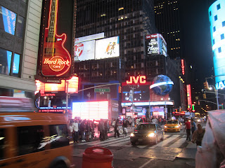 There was a waiting list and his turn came after 40mins of waiting. His gang was tired and so was he. That 40 minutes was the only rest they got since they stepped out of the bus in the morning. Hard Rock Cafe had a nice ambiance, there was no live performance but they played some good music. One of his friends had a cocktail and rest of them had mock-tails and desserts. Everything was so delicious. It was almost midnight and they had a bus to catch to return back. He did not want to leave but he had to. The rain had stopped and the public was back to the streets. It was such a romantic weather, as he walked by he realized how forever alone he was and imagined a whole list of girls (actually a slide show) whom he thought could have been a perfect company for this occasion. He boarded the bus back and as the bus left New York he fell asleep with a little smile on his face. :)