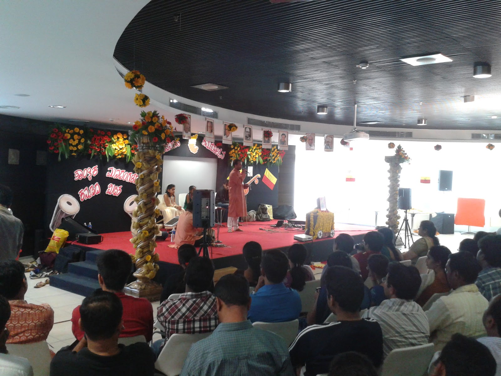 After this motivational talk, the Kannada KaLi classes were launched. It was an attempt to teach Kannada to the people who are interested. This initiative had a lot of takers even before the classes started. And finally the event ended with 2 hours of concert from the team of Sa-re-ga-ma-pa. A mix of classical and old Kannada songs were sung. The whole floor was jam packed. The crowd was a lot more then we had anticipated. And it was surprising to find a lot of non-Kannadigas also participating in the event. Everyone was dressed in Ethnic to show their support to the event.