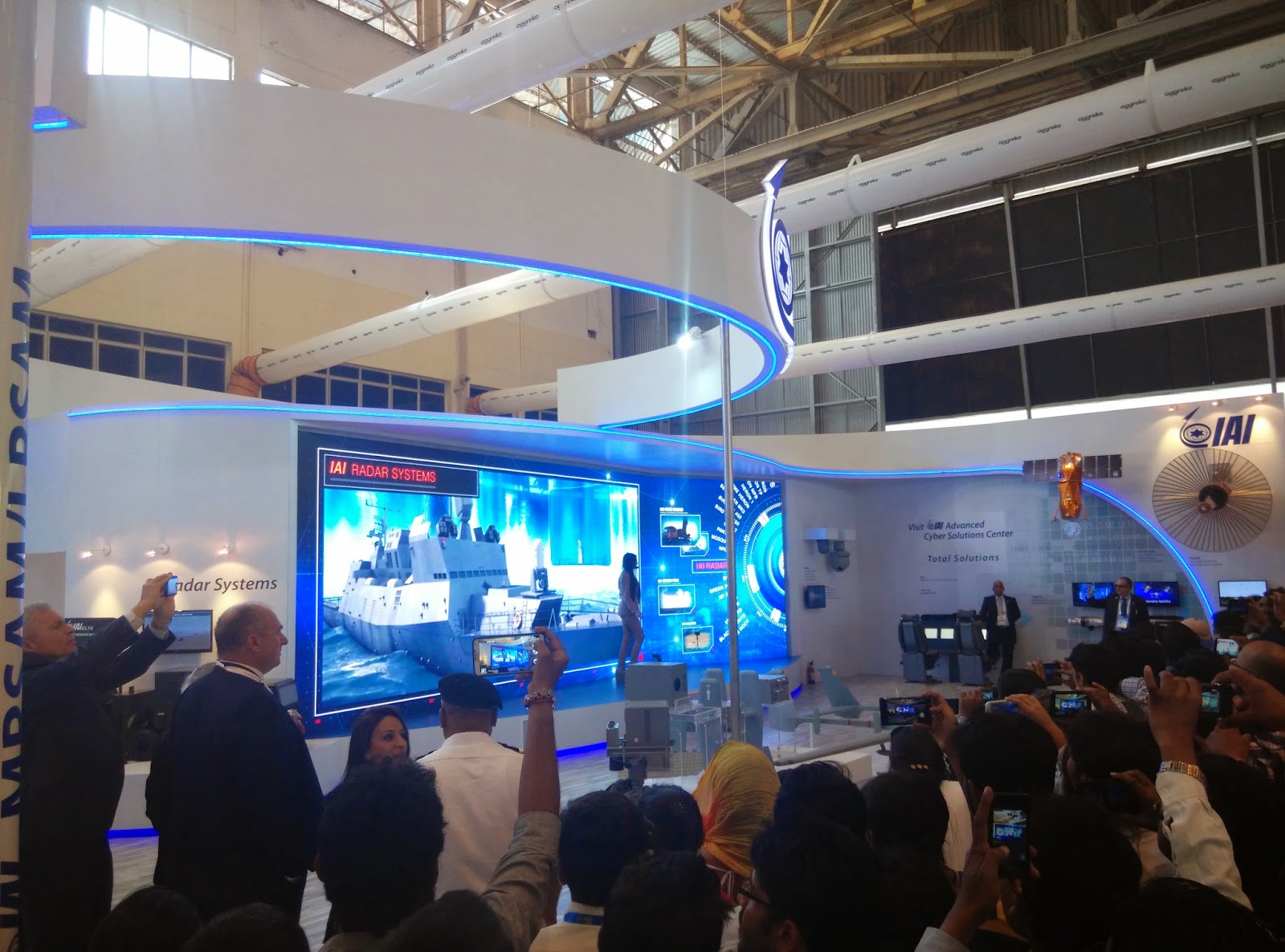 So my idea was to reach by 11am and stay until end of the day. What ended up happening was that I watched half of the 10am airshow from the traffic jam outside the air force station. After parking I managed to reach the business exhibition area at around 1pm which was too late to visit all the exhibits there. I did manage to get a glimpse of the recently spoken Rafael booth, the Israeli booth and our very own Make In India booth which had exhibits from HAL.