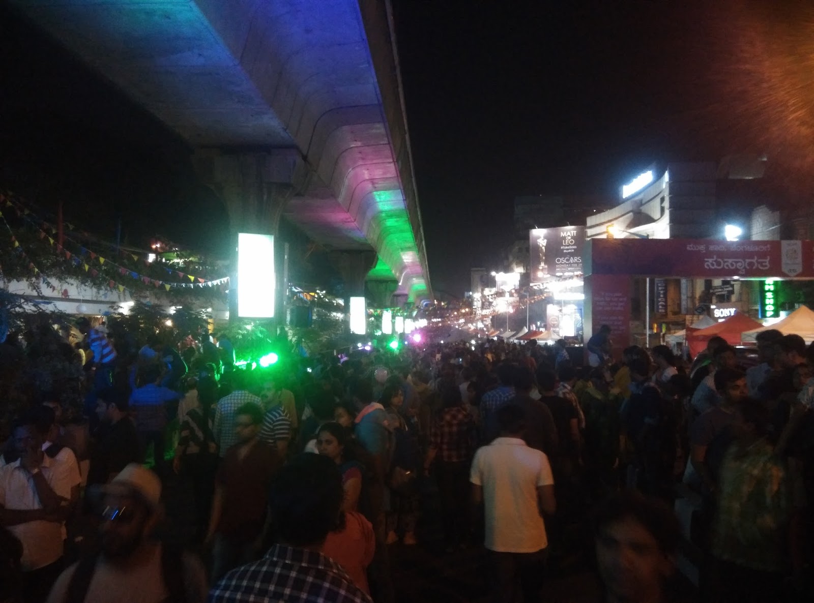 The entire MG Road was decorated with lights and it looked amazing. There was too much crowd and you couldn't stay at a place without being pushed away. There were too many people with their fancy cameras trying to capture something candid.