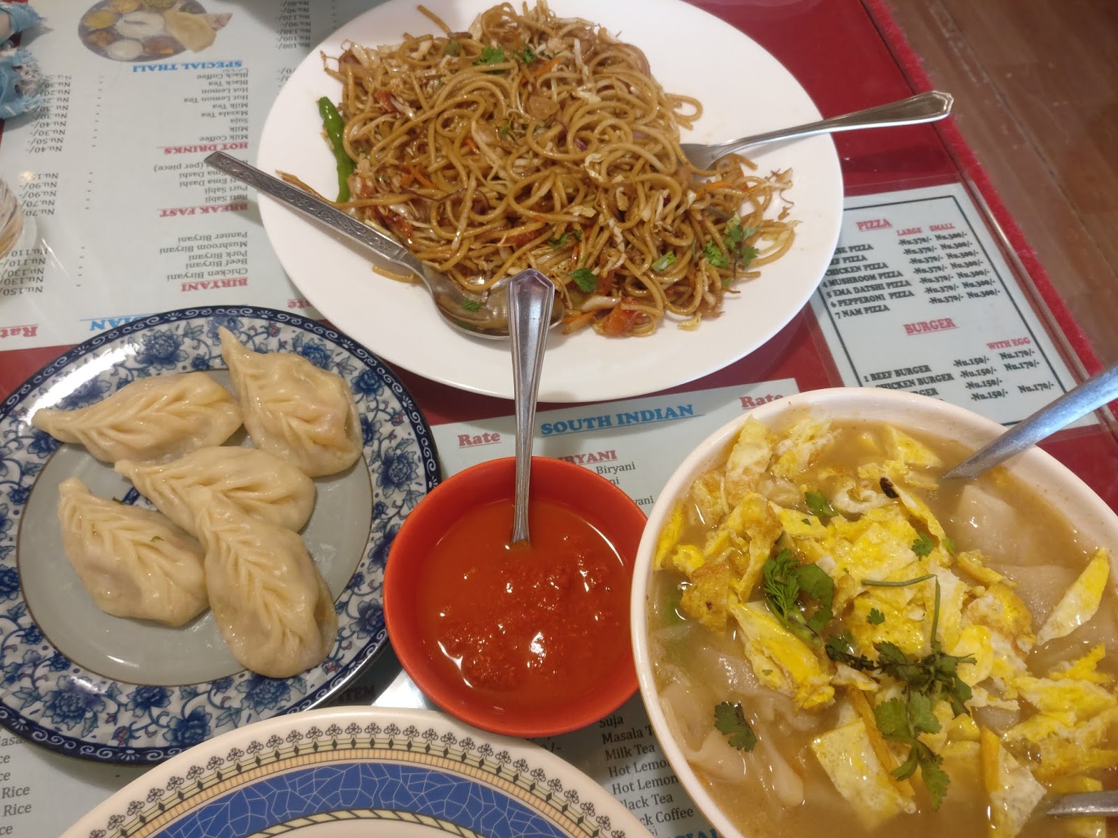 | Momos, Egg Thupka and Noodles |